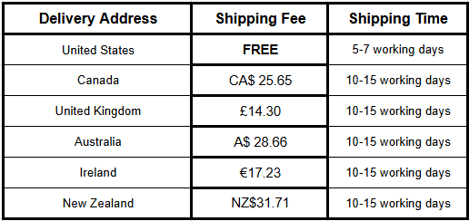 *Shipping fee varies for international orders. You can check the exact amount on the checkout page when you place your order.